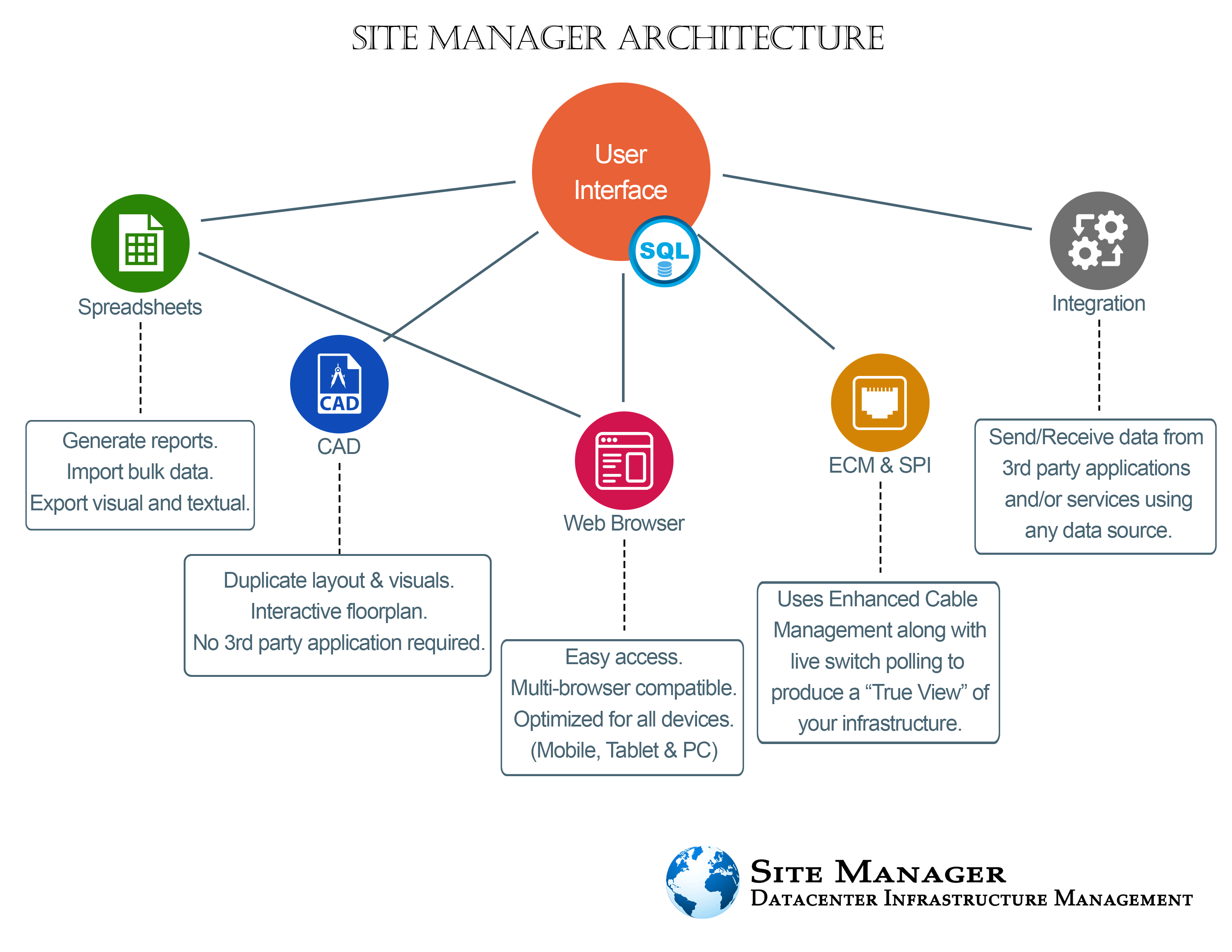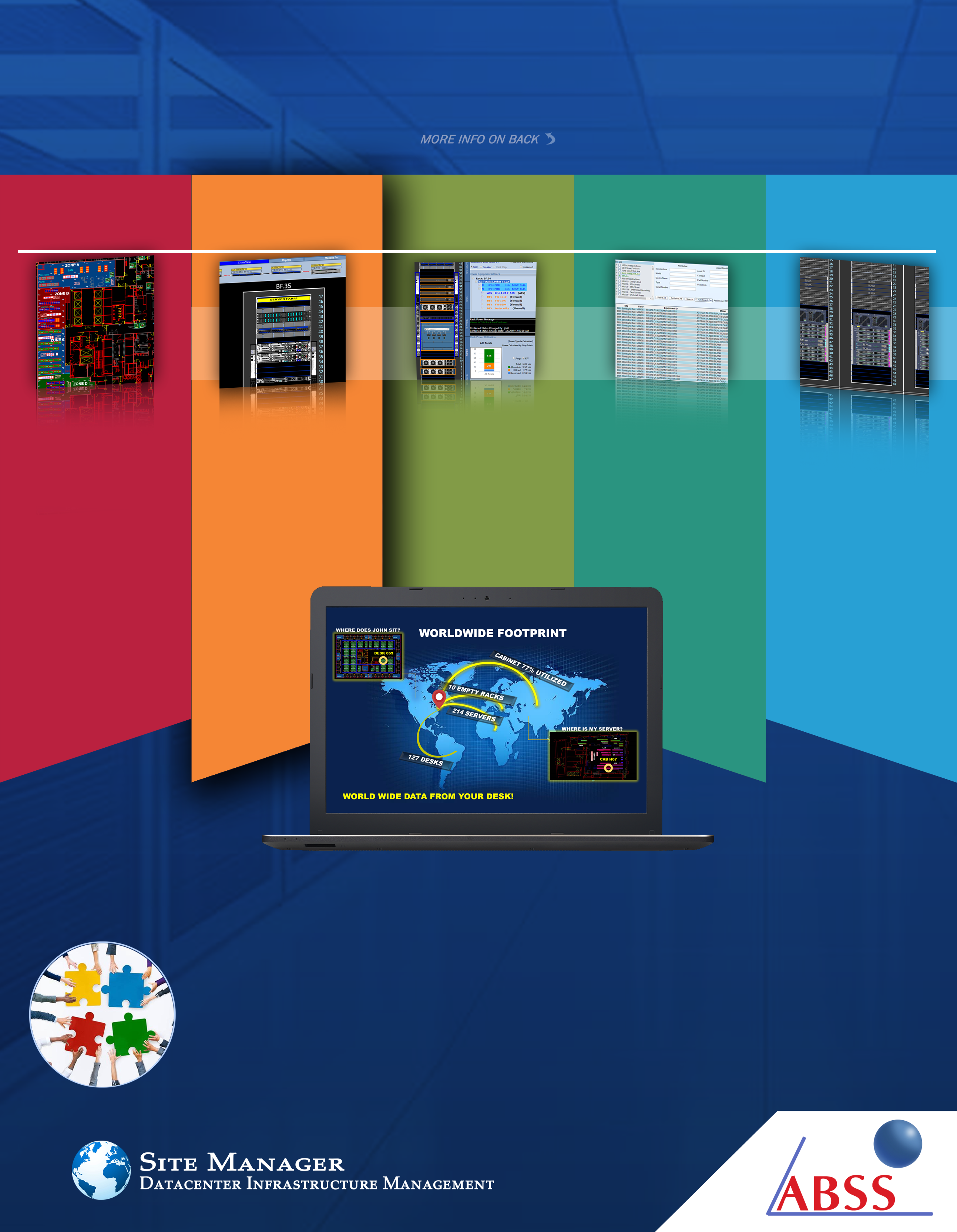 Here at ABSS, we are not just an application software provider. Our DCIM solution consists of services to help organize and manage your physical and device infrastructure on a local, regional or global scale. Integrated with our patented application - Site Manager - we provide the design, integration and support to digitize your physical IT Infrastructure.