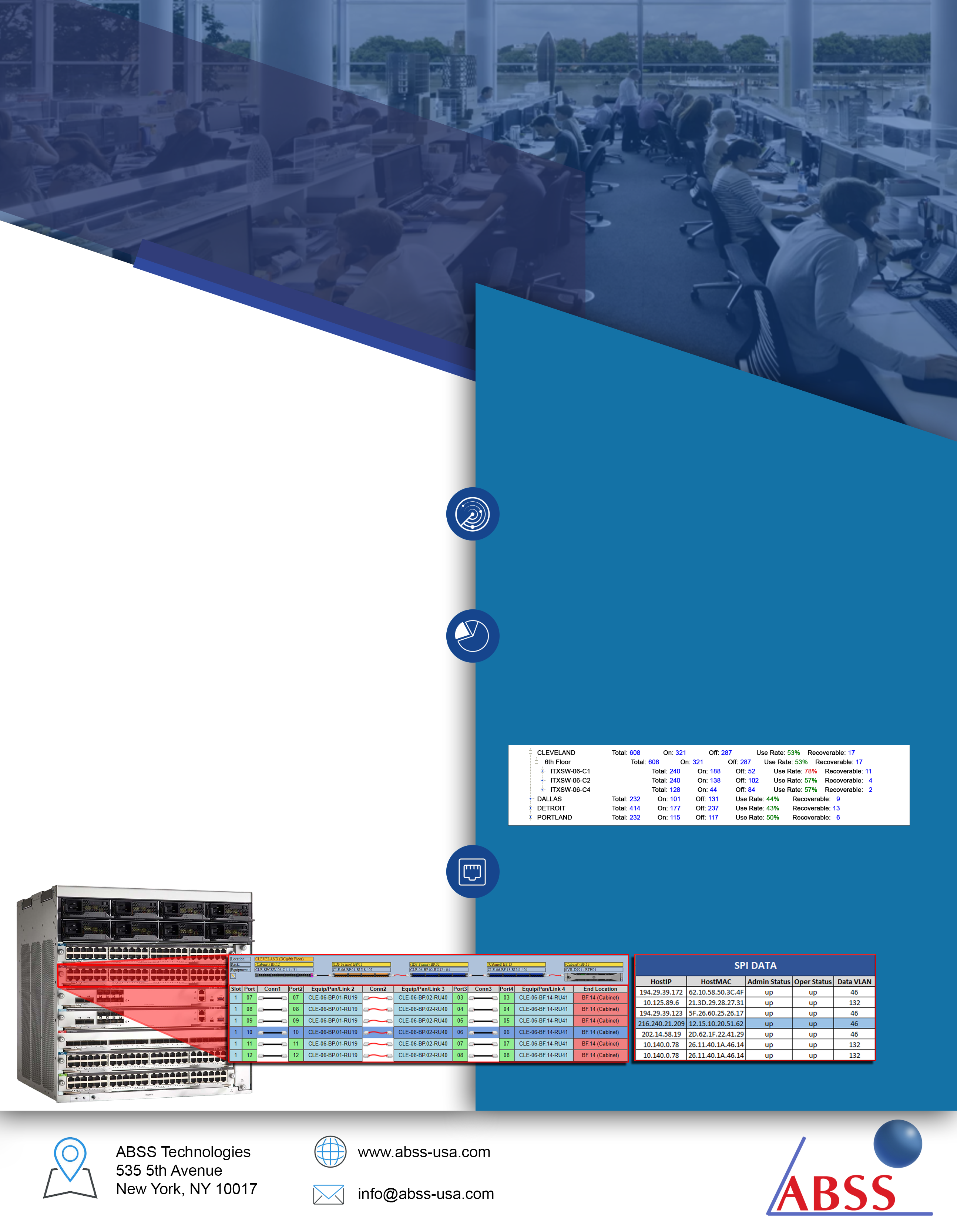 ABSS provides a dynamic automated end-to-end cable management solution that allows for efficient use of cable patching, ports, and infrastructure saving in people resources as well as physical infrastructure.